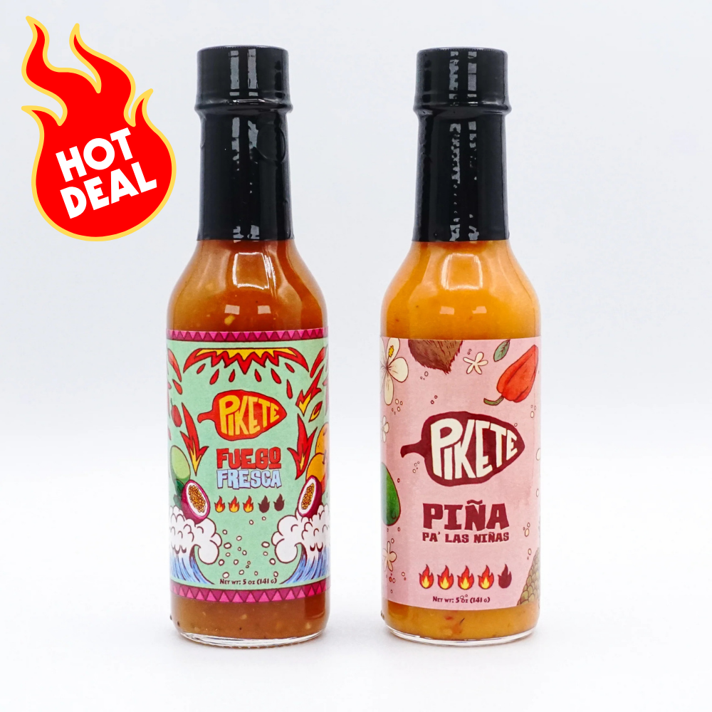 Fuego Fresca Ingredients: Passion Fruit, Habanero Hot Sauce (distilled vinegar, habanero peppers, salt, dried carrots, dried onion, dried garlic, xanthan gum), Brown Sugar, Orange Juice, Jalapeno Peppers, Lime Juice, Apple Cider Vinegar, Garlic, Citric Acid, Sea Salt, Natural Flavors. Piña Pa Las Niñas ingredients: Pineapple, Coconut Milk (coconut extract, water, citric acid, sodium metabisulfite (as a preservative), Habanero Peppers, Apple Cider Vinegar, Water, Brown Sugar, Lime Juice, Sea Salt, Coconut Extract (water, alcohol (21%), propylene glycol, artificial flavor).